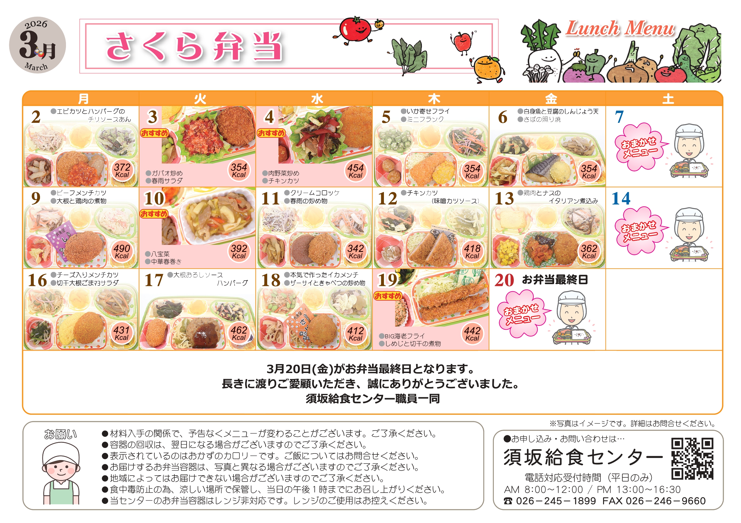 3月度のメニュー表です。皆様からのご注文をお待ちしております♪