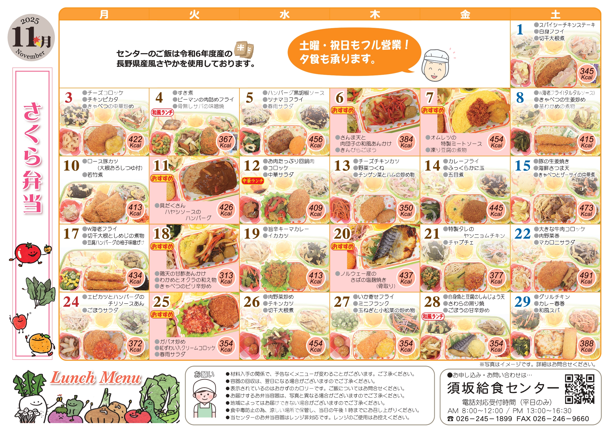 11月度のメニュー表です。皆様からのご注文をお待ちしております♪