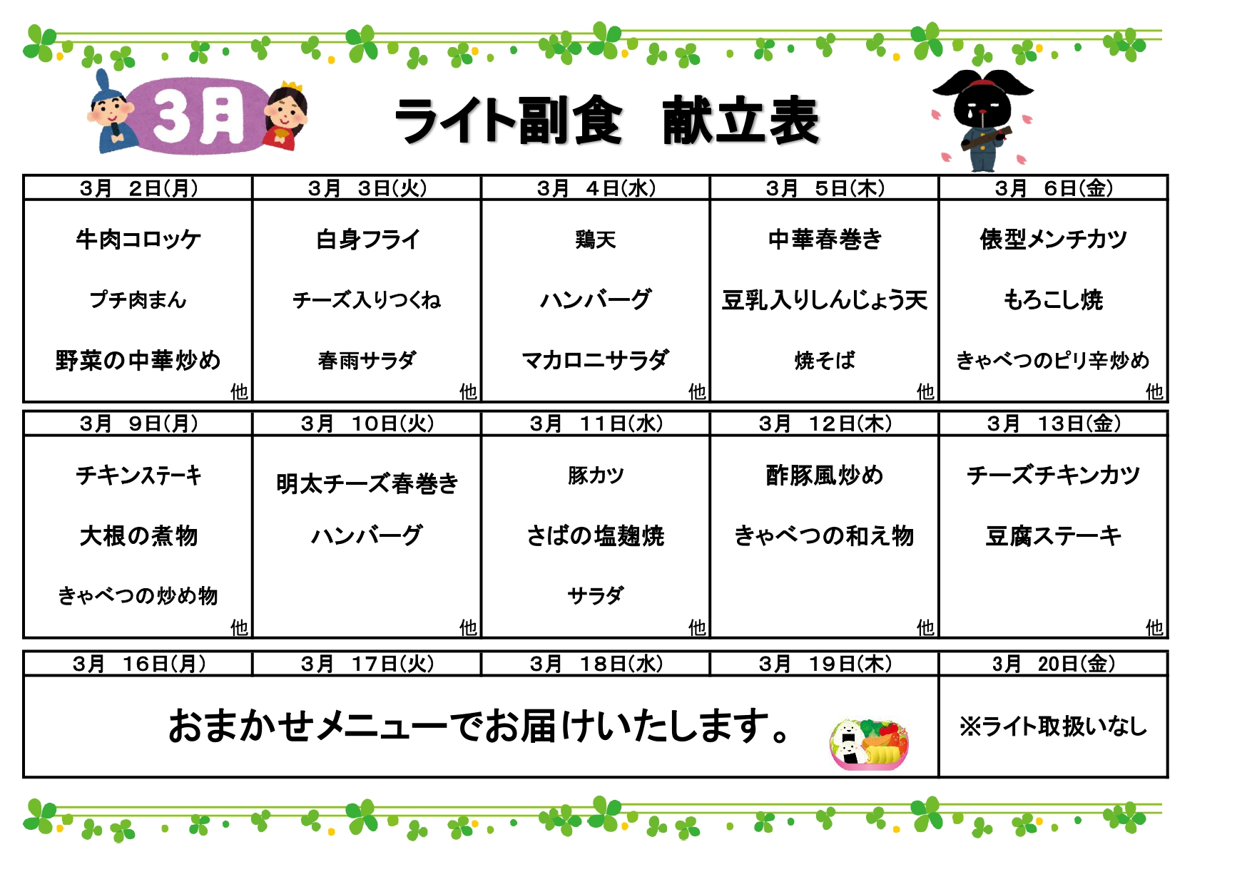 須坂給食センターは企業及び一般向けの昼食用弁当を心を込めてお届けしています。仕出し弁当やオードブルも承ります。